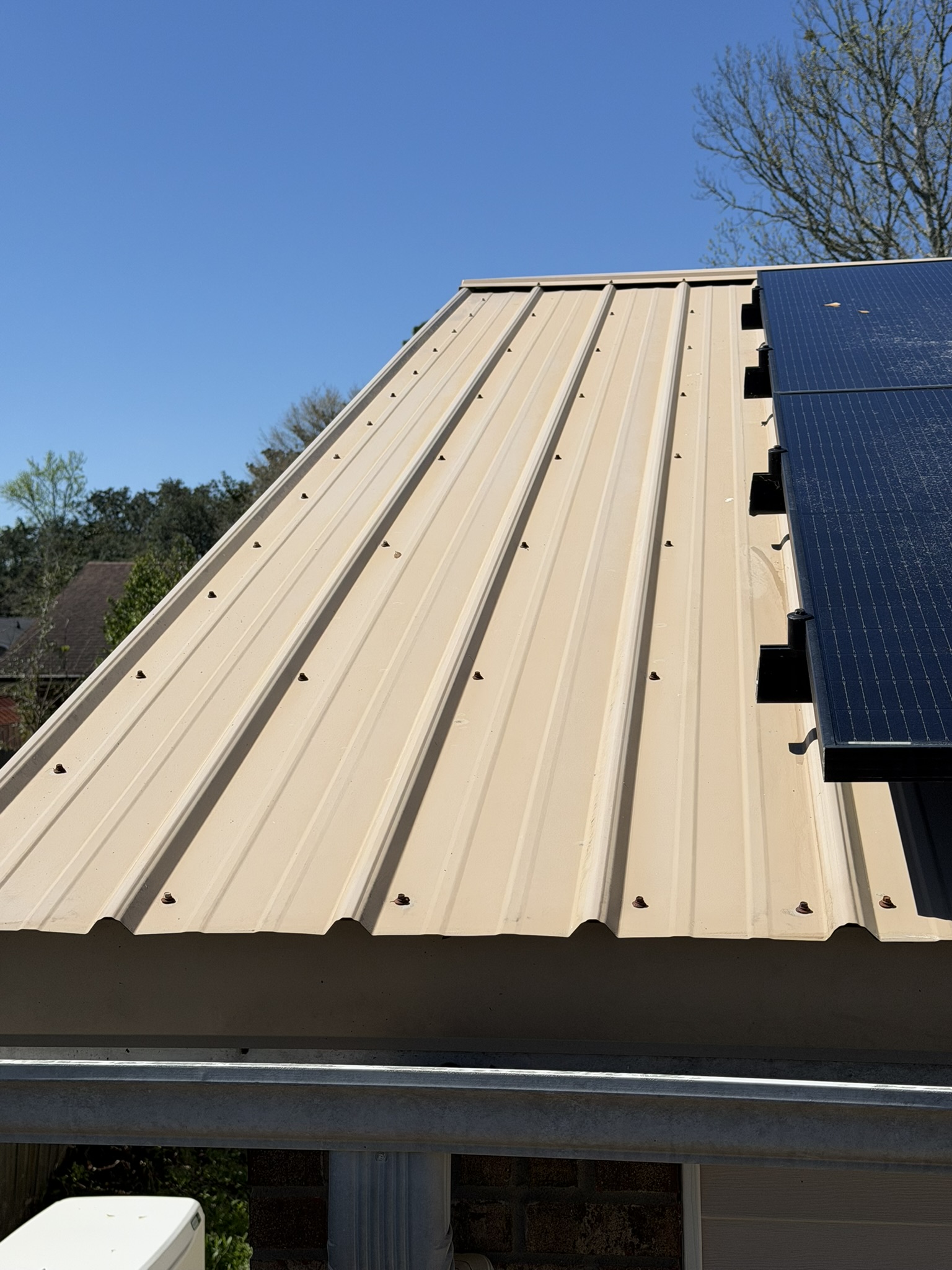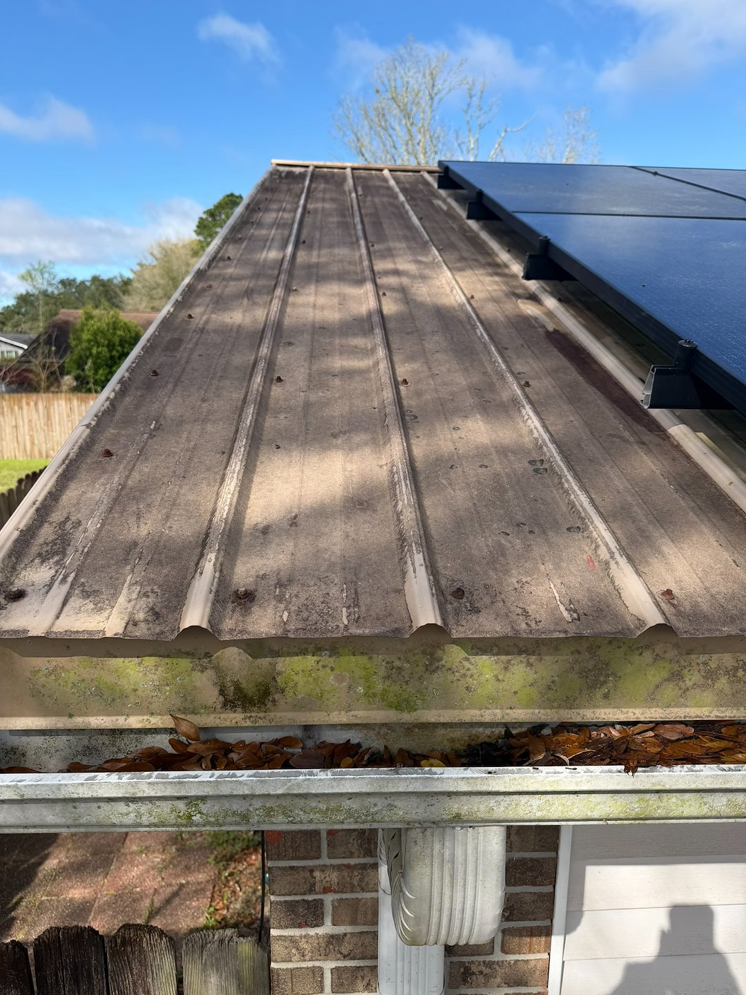 Years of buildup, dirt, and organic growth were safely removed from this metal roof, restoring its clean finish and improving both appearance and longevity.
